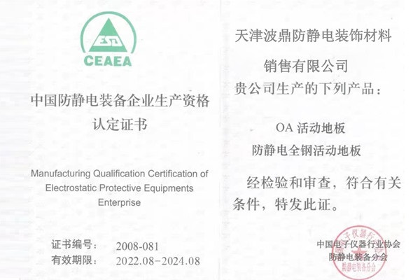 歡迎訪(fǎng)問(wèn)天津波鼎防靜電裝飾材料銷(xiāo)售有限公司網(wǎng)站!主營(yíng):防靜電地板,抗靜電地板,全鋼防靜電地板,全鋼無(wú)邊防靜電地板等,20年專(zhuān)業(yè)防靜電地板生產(chǎn)經(jīng)驗(yàn),京津冀地區(qū)專(zhuān)業(yè)防靜電地板生產(chǎn)制造商。